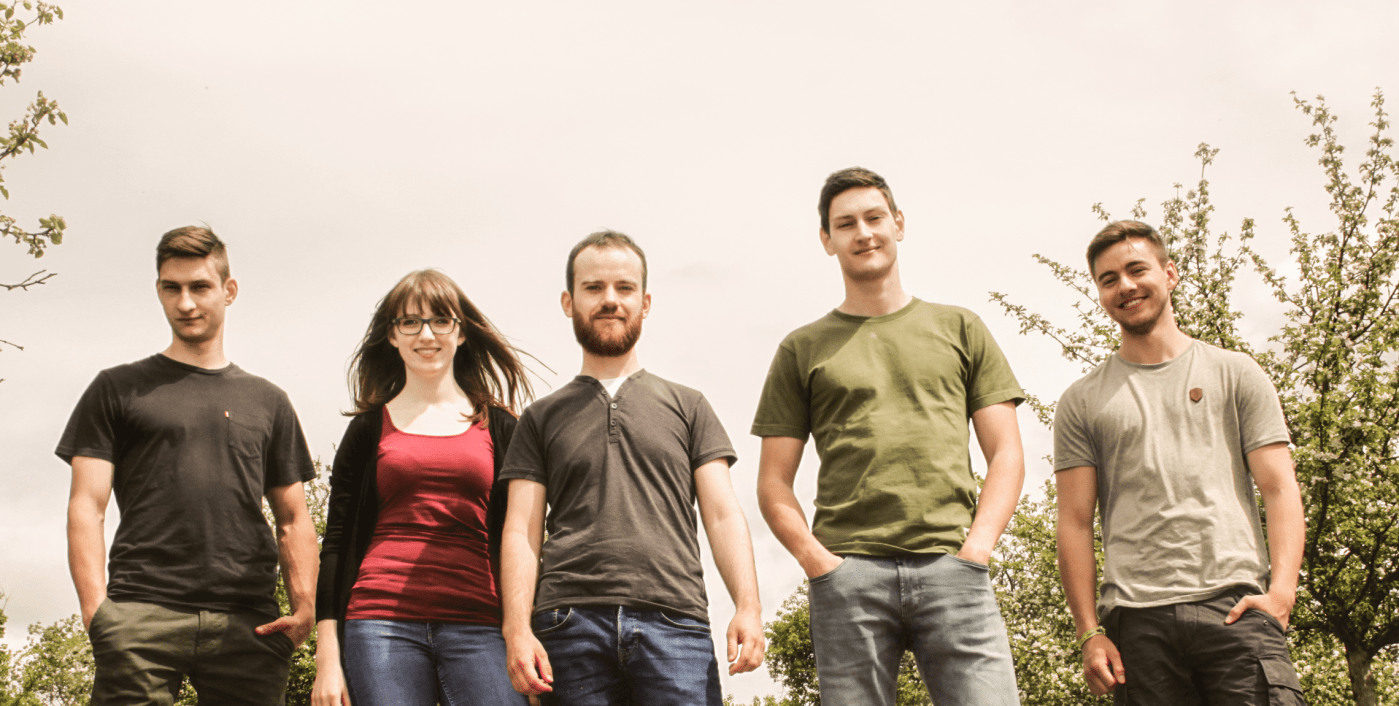 Das sind v.l.n.r Martin Seer (Schlagzeug), Elisabeth Schuler (Gesang), Tobias Schuh (Gitarre), Alexander Seer (E-Bass) und Christoph Scholz (Gitarre).